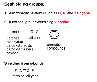 The following is a summary of electronegativity and -bond effects on chemical shift. For your convenience, this and other reference information is included in the Reference section of this tutorial.