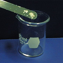 Put about 50 mg of solid into a beaker, vial, or test tube - no need to weigh it, just judge by the photo below. |