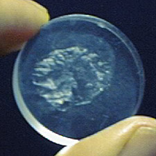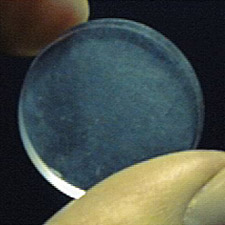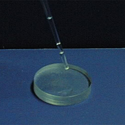 Obtain a single salt plate from the desiccator in the main fume hood in your lab. Ideally, the plate will already be clean. If necessary, clean the plate with a small amount of acetone. The plate should also be transparent, but quite foggy plates usually give acceptable spectra. |