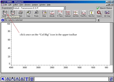 Wait for the instrument to run four background scans. This is necessary because it provides a baseline that the instrument will subtract out of subsequent scans - it's a way to compensate for the presence of water, CO2, impurities in salt plates, etc. |