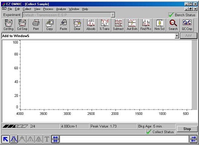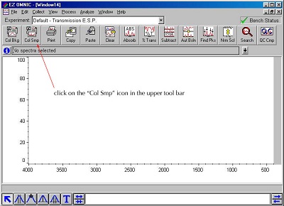 Place the salt plate(s) in the instrument. Click on the icon in the upper toolbar that says "Col Smp" to collect the sample. |